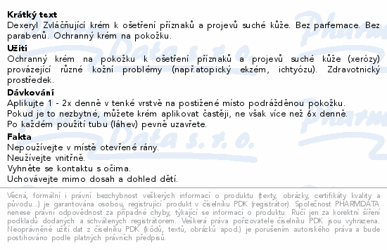 Dexeryl Zvláčňující krém k ošetření příznaků a projevů suché kůže. Bez parfemace. Bez parabenů. Ochranný krém na pokožku.