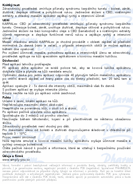 Zdravotnický prostředek zmírňuje příznaky syndromu karpálního tunelu - bolest, zánět, ztuhlost, zlepšuje citlivost a pohyblivost rukou. Jedinečné složení s CBD, rostlinnými extrakty a chladivý roll-on aplikátor zajišťují rychlý a intenzivní účinek.