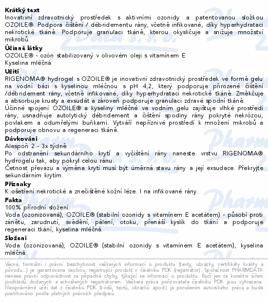 Inovativní zdravotnický prostředek s aktivními ozonidy a patentovanou složkou OZOILE®. Podpora čištění / débridementu rány, včetně infikované, díky hyperhydrataci nekrotické tkáně. Podporuje granulaci tkáně, kterou okysličuje a snižuje množství mikrobů.