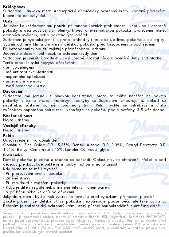 Sudocrem - zinková mast. Antiseptický víceúčelový ochranný krém. Vhodný především k ochraně pokožky dětí.