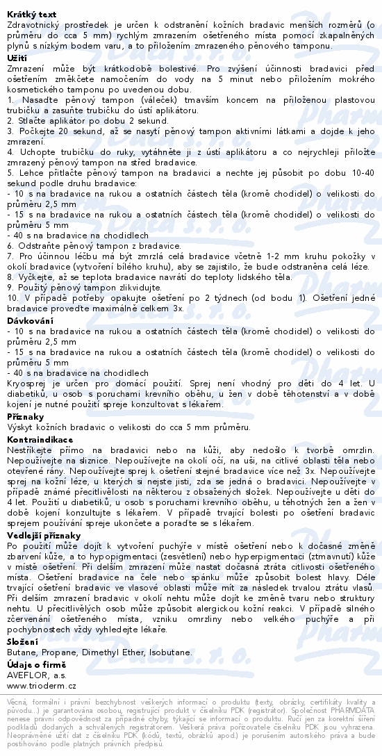 Zdravotnický prostředek je určen k odstranění kožních bradavic menších rozměrů (o průměru do cca 5 mm) rychlým zmrazením ošetřeného místa pomocí zkapalněných plynů s nízkým bodem varu, a to přiložením zmrazeného pěnového tamponu.