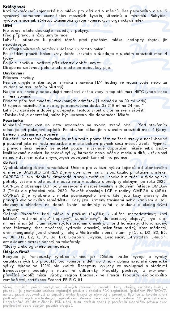 Kozí pokračovací kojenecké bio mléko pro děti od 6 měsíců. Bez palmového oleje. S vyvážený poměrem esenciálních mastných kyselin, vitaminů a minerálů. Babybio, výrobce s více jak 25-letou zkušeností vývoje kojeneckých organických mlék.