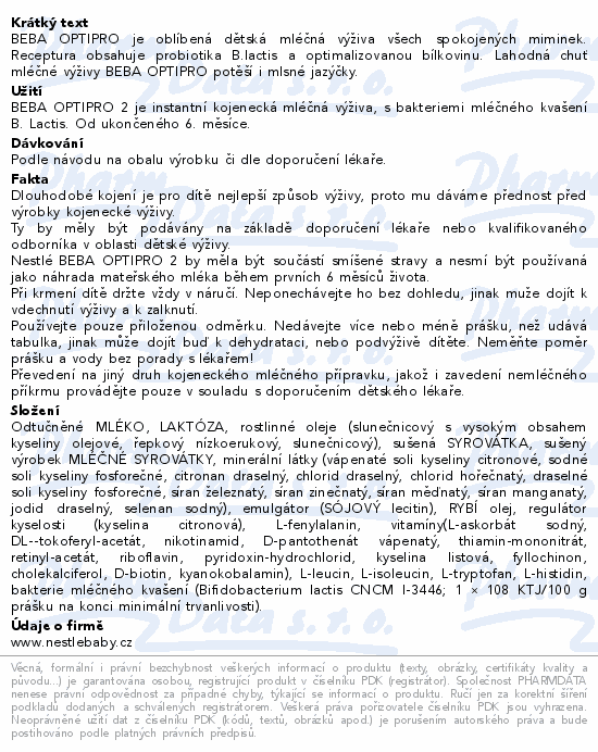 BEBA OPTIPRO je oblíbená dětská mléčná výživa všech spokojených miminek. Receptura obsahuje probiotika B.lactis a optimalizovanou bílkovinu. Lahodná chuť mléčné výživy BEBA OPTIPRO potěší i mlsné jazýčky.