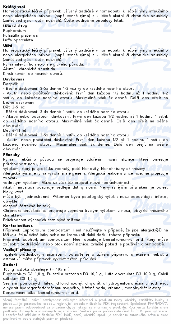 Homeopatický léčivý přípravek užívaný tradičně v homeopatii k léčbě rýmy infekčního nebo alergického původu (např. senná rýma) a k léčbě akutní či chronické sinusitidy (zánět vedlejších dutin nosních). Čtěte pozorně příbalový leták.