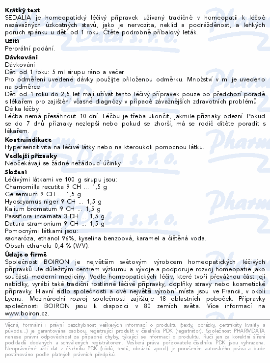 SEDALIA je homeopatický léčivý přípravek bez schválených léčebných indikací. Používejte ho podle rady odborníka na homeopatii. Čtěte pozorně příbalový leták.