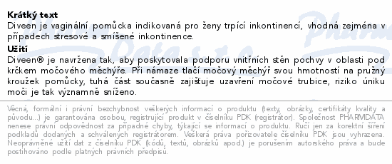 Diveen je vaginální pomůcka indikovaná pro ženy trpící inkontinencí, vhodná zejména v případech stresové a smíšené inkontinence.