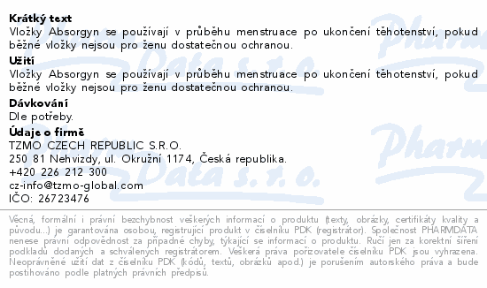 Vložky Absorgyn se používají v průběhu menstruace po ukončení těhotenství, pokud běžné vložky nejsou pro ženu dostatečnou ochranou.