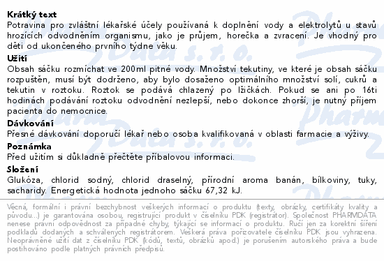 Potravina pro zvláštní lékařské účely používaná k doplnění vody a elektrolytů u stavů hrozících odvodněním organismu, jako je průjem, horečka a zvracení. Je vhodný pro děti od ukončeného prvního týdne věku.
