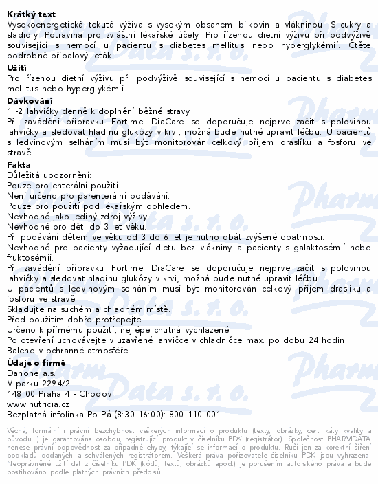 Vysokoenergetická tekutá výživa s vysokým obsahem bílkovin a vlákninou. S cukry a sladidly. Potravina pro zvláštní lékařské účely. Pro řízenou dietní výživu při podvýživě související s nemocí u pacientu s diabetes mellitus nebo hyperglykémií. Čtěte pozorně příbalový leták.