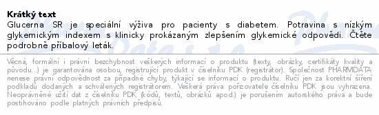 Glucerna SR je speciální výživa pro pacienty s diabetem. Potravina s nízkým glykemickým indexem s klinicky prokázaným zlepšením glykemické odpovědi. Čtěte pozorně příbalový leták.