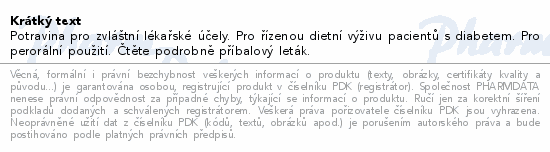 Potravina pro zvláštní lékařské účely. Pro řízenou dietní výživu pacientů s diabetem. Pro perorální použití. Čtěte pozorně příbalový leták.