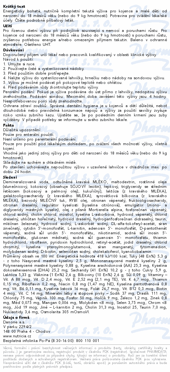 Potravina pro zvláštní lékařské účely. Pro řízenou dietní výživu při podvýživě související s nemocí a poruchami růstu u kojenců od narození do 18 měsíců (nebo do 9 kg hmotnosti). Infatrini je energeticky bohatá, nutričně kompletní tekutá výživa. Čtěte pozorně příbalový leták.