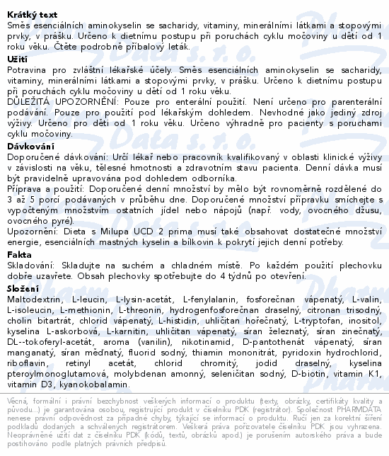 Milupa UCD 2 Prima por.plv. 1x500g NOVÝ