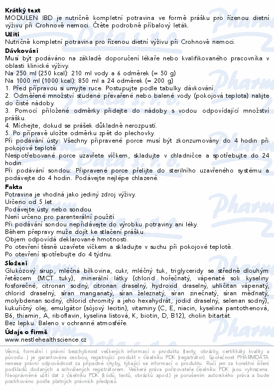 MODULEN IBD je nutričně kompletní potravina ve formě prášku pro řízenou dietní výživu při Crohnově nemoci. Čtěte pozorně příbalový leták.