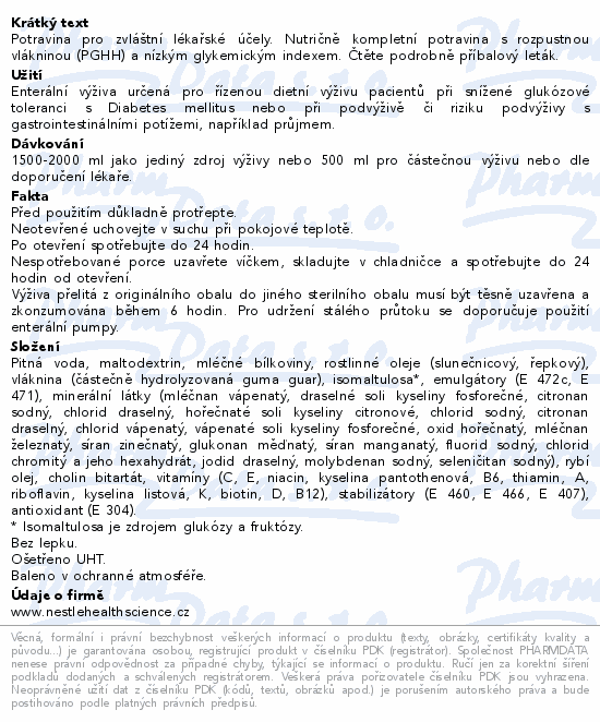 Potravina pro zvláštní lékařské účely. Nutričně kompletní potravina s rozpustnou vlákninou (PGHH) a nízkým glykemickým indexem. Čtěte pozorně příbalový leták.