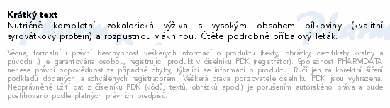 Nutričně kompletní izokalorická výživa s vysokým obsahem bílkoviny (kvalitní syrovátkový protein) a rozpustnou vlákninou. Čtěte pozorně příbalový leták.