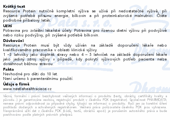 Resource Protein nutričně kompletní výživa se užívá při nedostatečné výživě, při zvýšené potřebě přísunu energie, bílkovin a při proteinkalorické malnutrici. Čtěte pozorně příbalový leták.