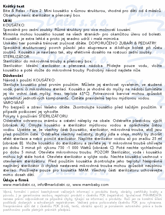Bite & Relax - Fáze 2: Mini kousátko s různou strukturou, vhodné pro děti od 4 měsíců. Obsahuje navíc sterilizátor a přenosný box.