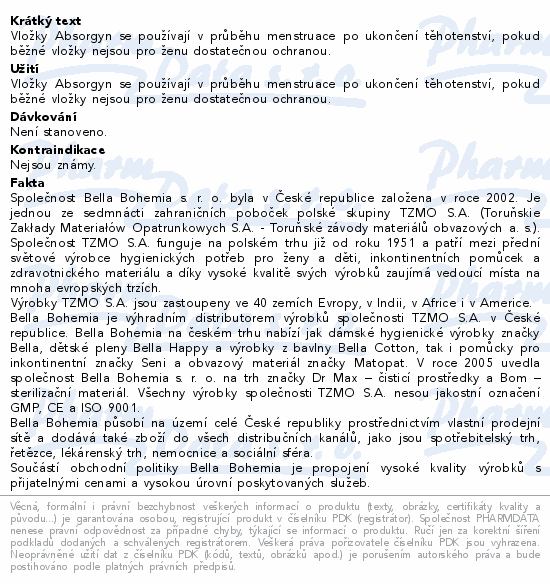 Vložky Absorgyn se používají v průběhu menstruace po ukončení těhotenství, pokud běžné vložky nejsou pro ženu dostatečnou ochranou.