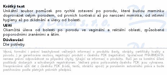 Unikátní soubor pomůcek pro rychlé zotavení po porodu, které budou maminku doprovázet celým porodem, od prvních kontrakcí až po narození miminka, od intimní hygieny až po zklidnění a úlevy od bolesti.