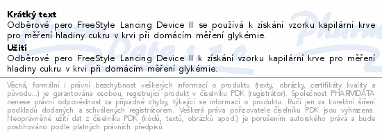 Odběrové pero FreeStyle Lancing Device II se používá k získání vzorku kapilární krve pro měření hladiny cukru v krvi při domácím měření glykémie.