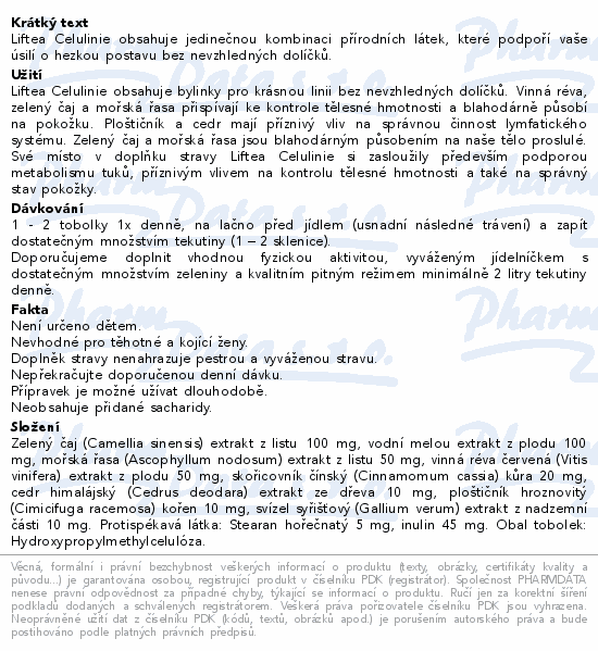 Liftea Celulinie obsahuje jedinečnou kombinaci přírodních látek, které podpoří vaše úsilí o hezkou postavu bez nevzhledných dolíčků.