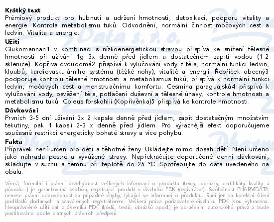 Prémiový produkt pro hubnutí a udržení hmotnosti, detoxikaci, podporu vitality a energie. Kontrola metabolismu tuků. Odvodnění, normální činnost močových cest a ledvin. Vitalita a energie.