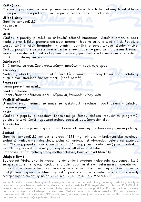 Originální přípravek na bázi garcínie kambodžské a dalších tří rostlinných extraktů je určen pro podporu prokrvení tkání a pro snižování tělesné hmotnosti.
