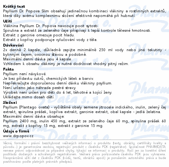 Psyllium Dr. Popova Slim obsahují jedinečnou kombinaci vlákniny a rostlinných extraktů, která díky svému komplexnímu složení efektivně napomáhá při hubnutí.