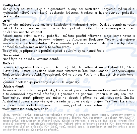Tělový olej na strie, jizvy a pigmentové skvrny od Australian Bodycare, vyživující a hydratační tělový olej, který poskytuje krásnou, hladkou a hydratovanou pokožku celého těla.
