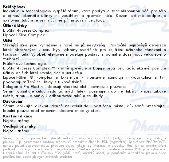 Inovativní a technologicky vyspělé sérum, které poskytuje specializovanou péči pro tělo a přináší okamžité účinky na zeštíhlení a zpevnění těla. Složení aktivně podporuje spalování tuků a je velmi účinné při snižování celulitidy.
