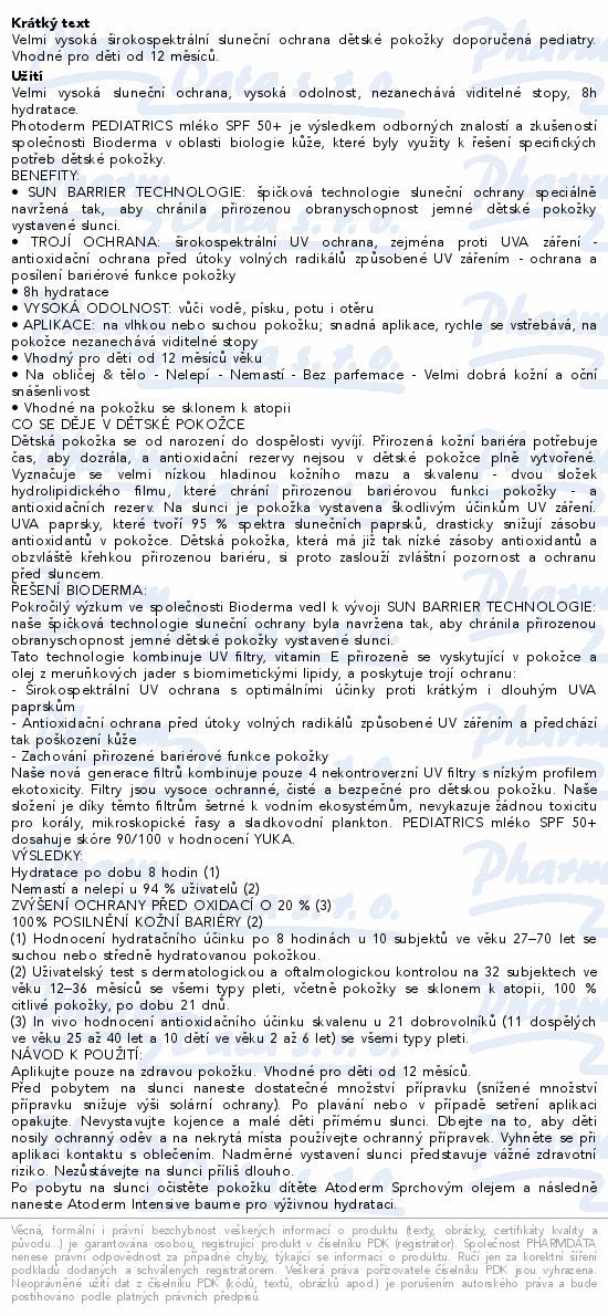 BIODERMA Photoderm PEDIATRICS Lait SPF50+ 200ml