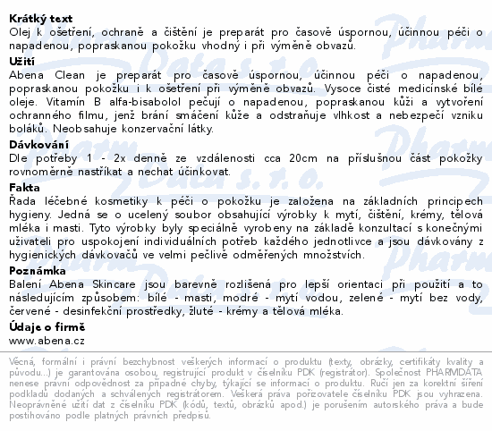 Olej k ošetření, ochraně a čištění je preparát pro časově úspornou, účinnou péči o napadenou, popraskanou pokožku vhodný i při výměně obvazů.
