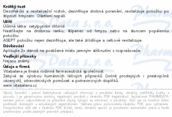 Dezinfekční a revitalizační roztok, dezinfikuje drobná poranění, revitalizuje pokožku po štípnutí hmyzem. Ošetření nepálí.