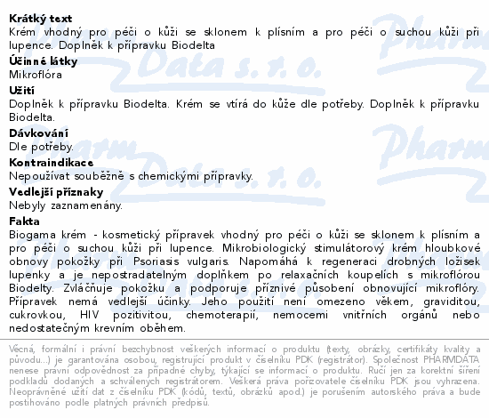 Krém vhodný pro péči o kůži se sklonem k plísním a pro péči o suchou kůži při lupence. Doplněk k přípravku Biodelta