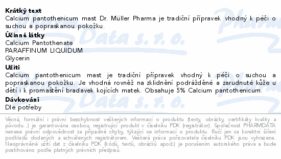 Calcium pantothenicum mast Dr. Müller Pharma je tradiční přípravek vhodný k péči o suchou a popraskanou pokožku.