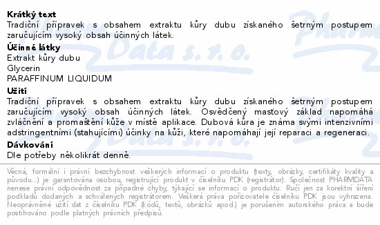 DR. MÜLLER Dubová kůra mast je přípravek určený k péči o pokožku se sklonem k podráždění, zarudnutí nebo svědění. Používá se zejména při potížích s hemoroidy, opruzeninami nebo drobnými poraněními v kožních záhybech. Dále je vhodná i k regeneraci podrážděné pokožky (kůže po slunění, drobné spáleniny nebo proleženiny), na hojení drobných trhlinek a prasklinek kůže a při nadměrném pocení nohou.
