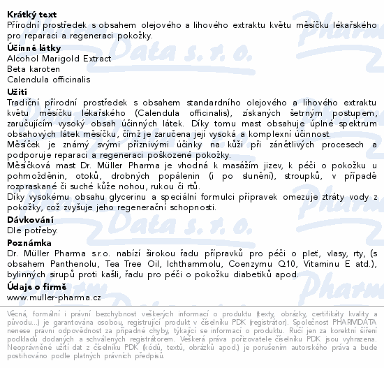 Přírodní prostředek s obsahem olejového a lihového extraktu květu měsíčku lékařského pro reparaci a regeneraci pokožky.