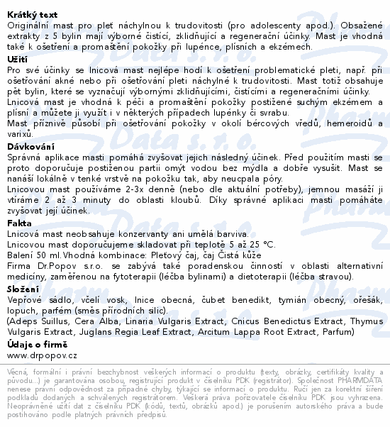 Originální mast pro pleť náchylnou k trudovitosti (pro adolescenty apod.). Obsažené extrakty z 5 bylin mají výborné čistící, zklidňující a regenerační účinky. Mast je vhodná také k ošetření a promaštění pokožky při lupénce, plísních a ekzémech.
