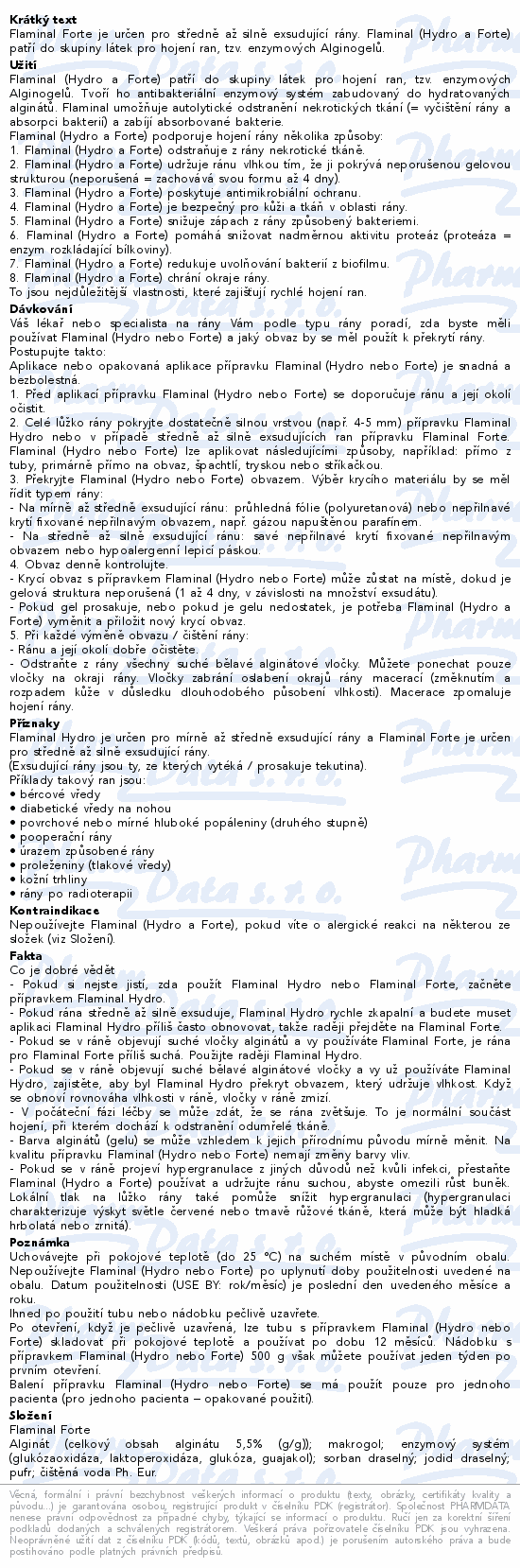 Flaminal Forte je určen pro středně až silně exsudující rány. Flaminal (Hydro a Forte) patří do skupiny látek pro hojení ran, tzv. enzymových Alginogelů.
