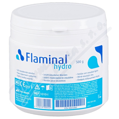 Flaminal Hydro je určen pro mírně až středně exsudující rány. Flaminal (Hydro a Forte) patří do skupiny látek pro hojení ran, tzv. enzymových Alginogelů.
