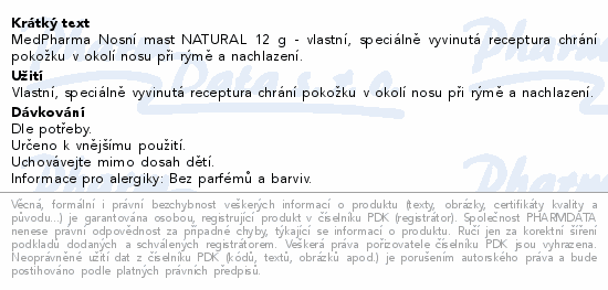MedPharma Nosní mast NATURAL 12 g - vlastní, speciálně vyvinutá receptura chrání pokožku v okolí nosu při rýmě a nachlazení.