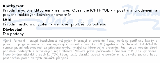 Přírodní mýdlo s ichtyolem - krémové. Obsahuje ICHTHYOL - k pozitivnímu ovlivnění a prevenci některých kožních onemocnění.