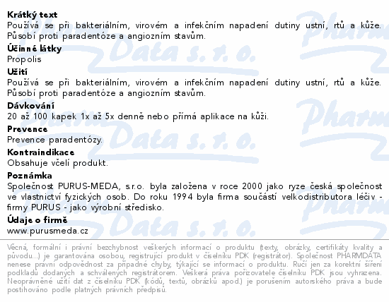 Propolisové kapky jsou určeny k péči o dutinu ústní a pokožku: