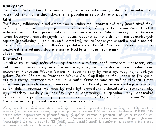 Prontosan Wound Gel X je viskózní hydrogel ke zvlhčování, čištění a dekontaminaci rozsáhlých akutních a chronických ran a popálenin až do čtvrtého stupně.