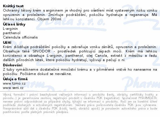 Ochranný tělový krém s argininem je vhodný pro ošetření míst vystaveným riziku vzniku opruzenin a proleženin. Zmírňuje podráždění, pokožku hydratuje a regeneruje. Má lehkou konzistenci. Objem 200ml.
