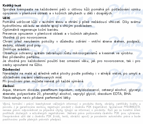 Spiridea krémpasta na každodenní péči o citlivou kůži pomáhá při potlačování vzniku opruzenin v plenkové oblasti a v kožních záhybech u dětí i dospělých.