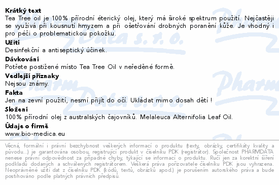 Tea Tree oil je 100% přírodní éterický olej, který má široké spektrum použití. Nejčastěji se využívá při kousnutí hmyzem a při ošetřování drobných poranění kůže. Je vhodný i pro péči o problematickou pokožku.