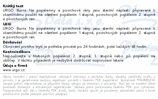 URGO Burns Na popáleniny a povrchové rány jsou sterilní náplasti připravené k okamžitému použití na ošetření popálenin 1.stupně, povrchových popálenin 2. stupně a povrchových ran.