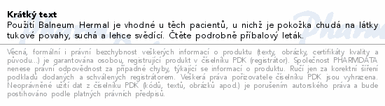 Použití Balneum Hermal je vhodné u těch pacientů, u nichž je pokožka chudá na látky tukové povahy, suchá a lehce svědící. Čtěte pozorně příbalový leták.